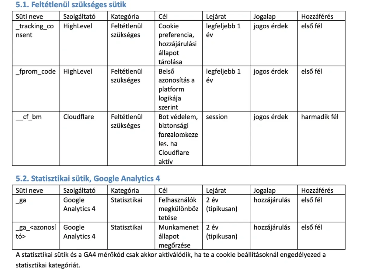 Platformszolgáltató és technikai üzemeltető: HighLevel, Inc., 1801 N. Lamar St., Suite 600, Dallas, Texas 75202, USA.